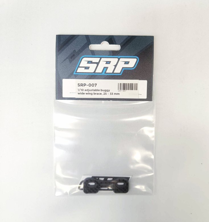 This adjustable wing brace for 1/10 buggys helps keep your wing secure from run to run. the one-piece design strenghtens the wing mount, making both the mount and wing more durable. This brace is extra wide to support your wing even more. Made from 3mm carbon fiber.